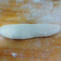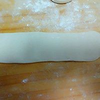1. 面粉加少量盐总温水活成饺子面软硬的面团,醒发半个小时后分成100克左右的面团,将面团揉匀搓成长条。