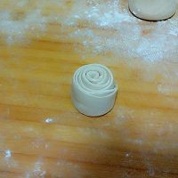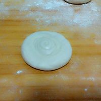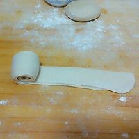 6. 卷好的面团摁扁,擀成圆饼。