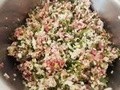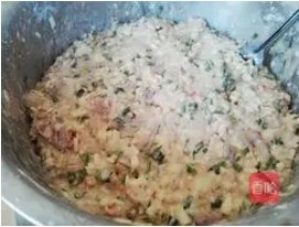 加入面粉和地瓜粉,打入鸡蛋,调入盐、味精、白酒、五香粉和蒜蓉酱