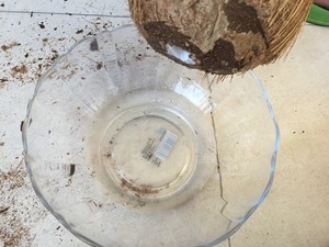 1.用刀将椰子开个口,将椰汁倒出来备用