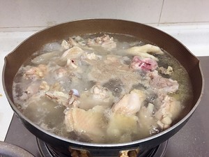 3.锅中煮开水,将鸡肉洗干净,然后倒入锅中煮一分钟,去除血水