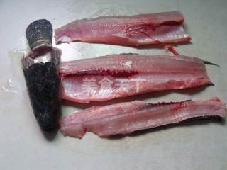鱼洗净去头。下面和上面各放一块厨房巾,用刀从脊背处处理成两片