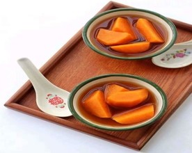 【功效】番薯糖水是中国广东的一种糖水,传统特色小吃。主要流行于华南及香港。其制法主要是由番薯、片糖或冰糖与水煮成,冬天时或会加入姜片以作驱寒。