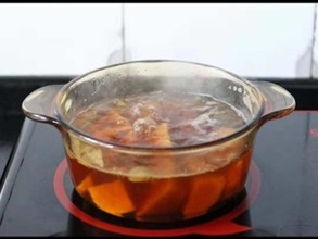 放入红糖,中小火煮15-20分钟到红薯软烂即可。