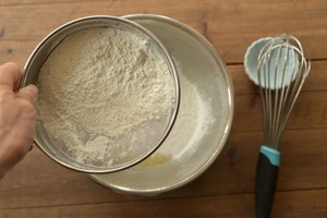 泡打粉加入低筋面粉中, 过筛到面糊