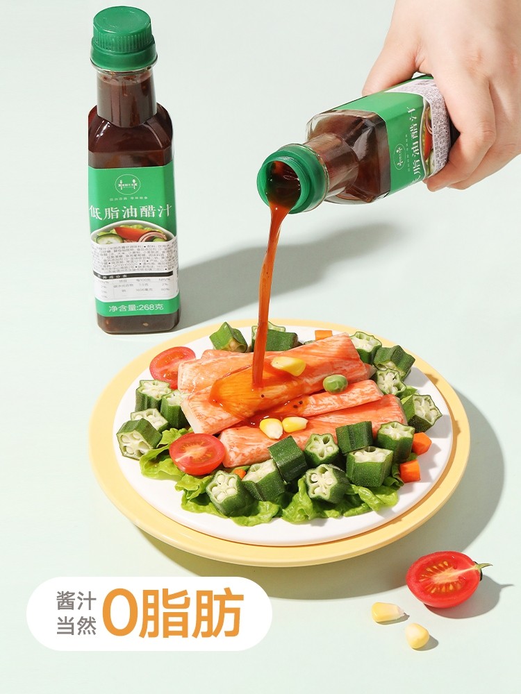低脂油醋汁由店家特别调配,精选优质调制酱油和人工甜味剂,拒绝添加白砂糖。通过增加蔬菜的风味,降低人本身产生的对于盐、糖等