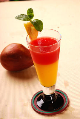 鸳鸯果汁是以芒果、草莓等为主要食材制作的美食。