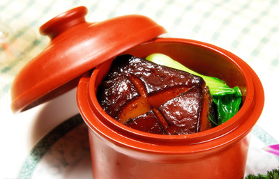 东坡肉的最早发源地是浙江杭州。1080年苏东坡谪居黄州,因当地猪多肉贱,才想出这种吃肉的方法。苏东坡的烹肉之法在其《炖肉歌》中可见奥妙:“慢着火、少着水,柴火罨焰烟不起,待它自熟莫催它,火候足时它自美