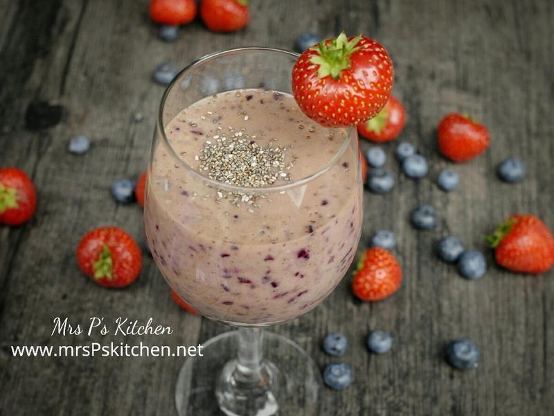 炎炎夏日,喝奶昔Smoothie解渴又健康,美味又充满能量!这个奶昔用蓝莓,草莓及香蕉,味道酸甜开胃。调入香浓的野莓果茶,加了一阵清新的茶香,不用特别调味已很美味!再加入有机奇亚籽,口感丰富,充满能量