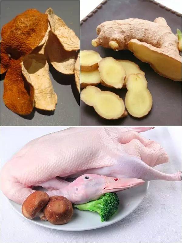 材料:陈皮10克、光老鸭1只、生姜3片 功效:理气健脾,燥湿化痰,润肺止咳,滋阴补血,健脾醒胃。