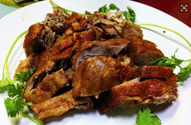 熏鹅是一道桌面酒席必上的汉族传统名肴,属于闽菜系。此菜产自武夷山地区。在当地相当有名。熏鹅讲究色、香、味,经过长时间熏制而出,鹅肉融入了茶香、桂叶香及糯米香味,因而香味持久,浓浓的香熏味也掩盖不了麻辣