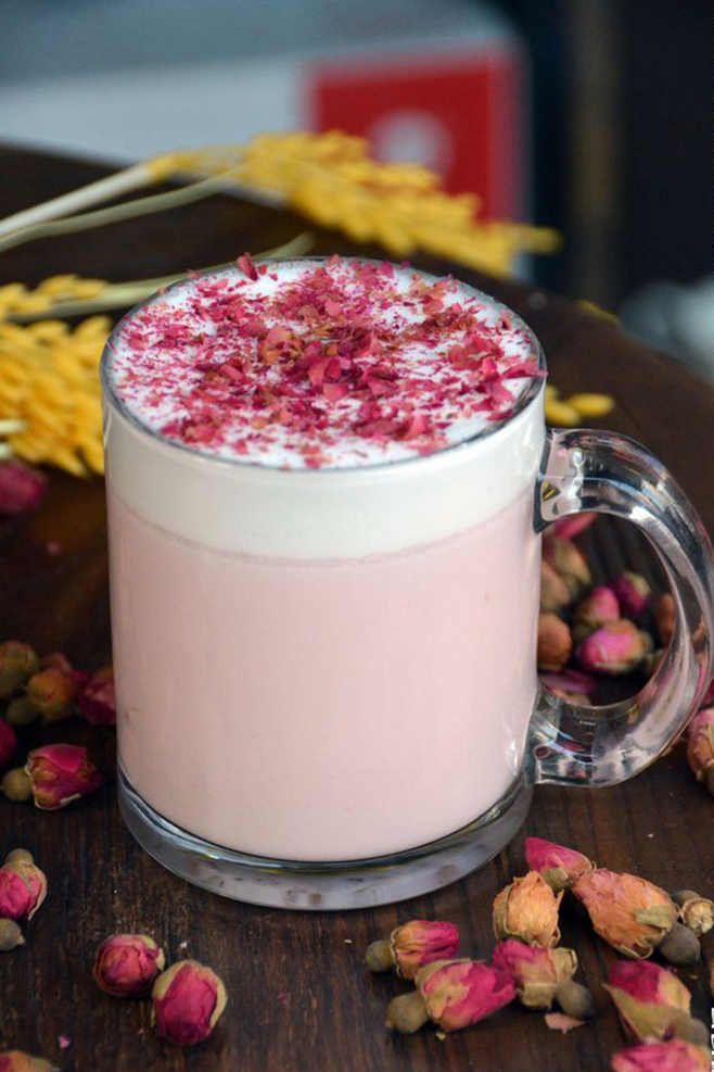清香草莓的香气融入丝滑奶茶,玫瑰养颜有轻盈,点缀其中。
