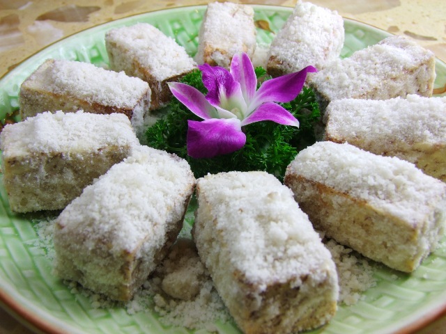 反沙芋是广东潮州地区传统名点,属于潮州菜。具有皮脆肉香,秋冬甜食等特点。由白芋头750克,猪油500克(耗150克),白糖400克,葱粒15克,豆仁末(黄豆粉)25克等原料制成。