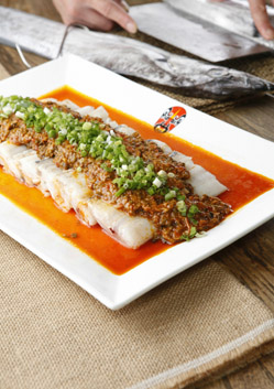 特色菜品,带鱼肉嫩体肥,味道鲜美,且含有大量的不饱和脂肪酸,具有降低胆固醇的作用,有很高的营养价值。俏江南选用东海的钓带,采用老坛蒸的做法,在味道、营养上更胜一筹。