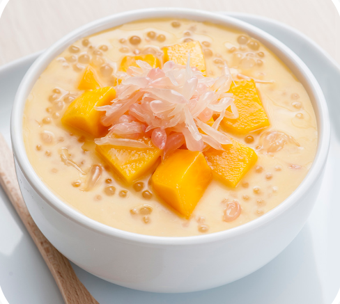 杨枝甘露是甜点点皇牌甜品,而芒果、西柚肉作为材料,味道清新,酸甜开胃,是夏日必食的消暑甜品。