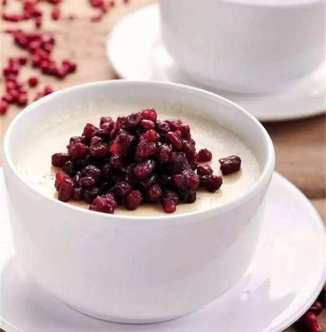 红豆双皮奶是一种粤式甜品,是以普通牛奶为原料做成的双皮奶撒上煮熟的红豆而成。一碗上佳的红豆双皮奶,其状如膏,其色洁白,质感细腻嫩滑,口味甜香清淡。