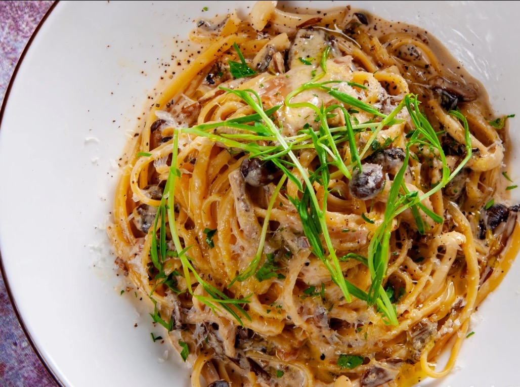 蘑菇末加牛肝烹意面