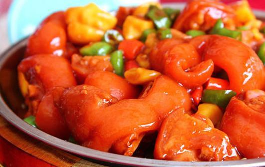 是一道有名的湘菜,肉酥烂,色鲜艳,汁浓味厚,蹄中的胶原蛋白是人体皮肤的主要成分之一,也有促进女性激素合成的作用,有美容养颜之功效。