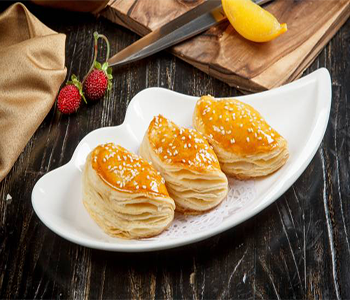 榴莲酥是用榴莲果肉和面粉烤制的一种甜点。金黄诱人的榴莲酥以新鲜榴莲果肉配制的软滑馅心,配以层次分明、异常松化、做工精细的酥皮,令人食指大动。吃完后淡淡的榴莲味让人“榴莲”忘返。