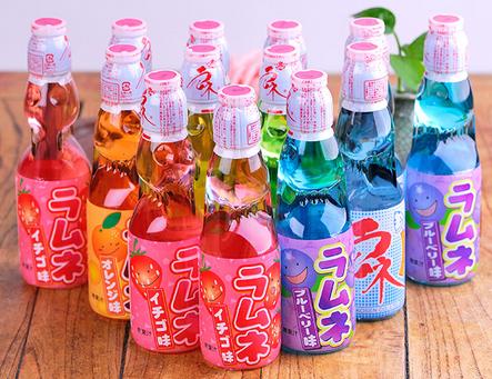 波子汽水在1872年发明,1884年传入日本,是带有青柠和柠檬口味的碳酸饮料,其日文名称“ラムネ”来自英文的 “lemonade”(レモネード,柠檬水)。因为加了二氧化碳,口味清凉爽口,天气炎热时销路