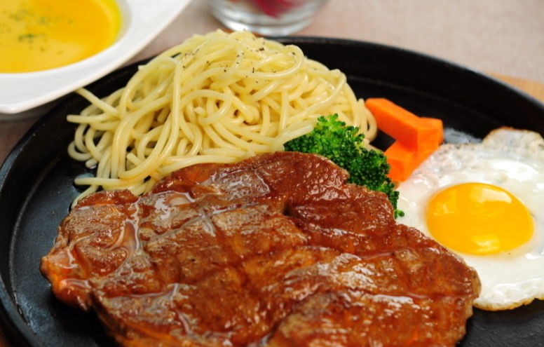 进口谷饲肉眼牛排原料(230g),精选虎虾(130g),搭配多彩烤鲜蔬和三款酱汁—— 秘制哈里萨香草辣酱、秘制川味香辣酱、奶油蘑菇酱(或黑胡椒酱),享受海陆炙烤狂欢