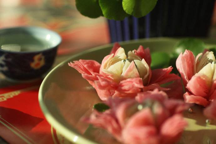形似荷花,酥层清晰,观之形美动人,食之酥松香甜,别有风味。