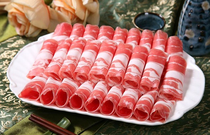 指牛身上,经过排酸处理后切薄,肥瘦相间,方便在火锅内涮食的一种牛肉片。