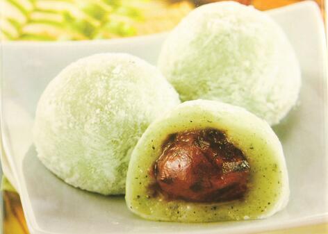 日本传统点心,是一种艾草与糯米完美结合的名点优品,红豆沙为内馅儿,表面再裹一层黄豆粉,口感软糯,QQ弹弹