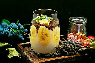 用料:牛奶 1000ml 酸奶菌粉 1克 香蕉 1个、饼干碎 4勺 薄荷叶 1朵