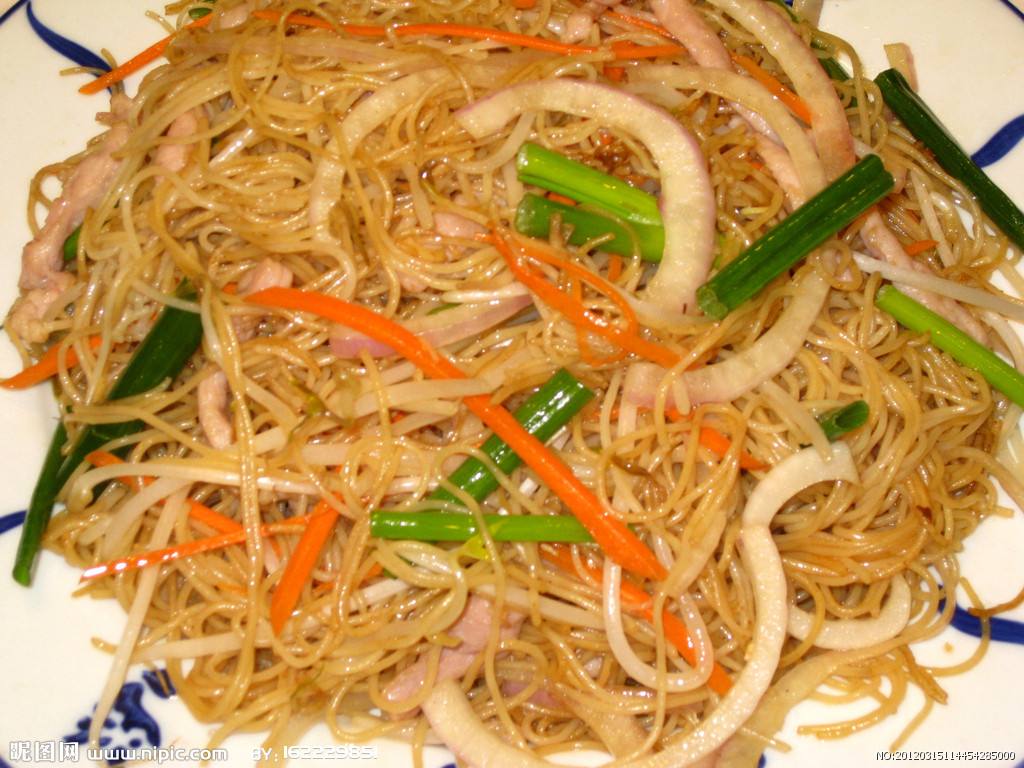 三丝炒米粉是广东省东莞市的一道传统小吃,属于粤菜系;该菜品的做法是先将米粉用清水渍泡2小时至软捞干,烧油锅,倒入鸡蛋炒散,然后加入剩余的配料炒匀,倒下米粉小火轻炒至软,调入调料炒匀即可;该菜品很受广大
