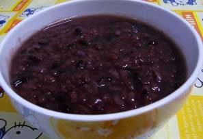 将黑豆、糯米洗干净,放在锅内,加水适量,用温火煮成粥,每日服用。
