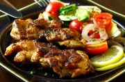 鸡腿(琵琶腿),柠檬,洋葱,大蒜,小番茄沙拉,黄瓜沙拉,鸡蛋沙拉,盐,黑胡椒粉,橄榄油
